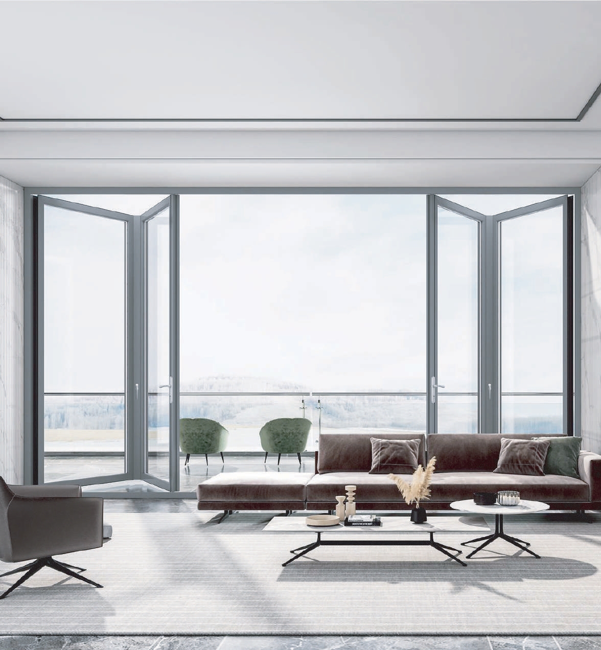 - 80 Series Bi-Folding Door: Hidden hinges and premium folding mechanism